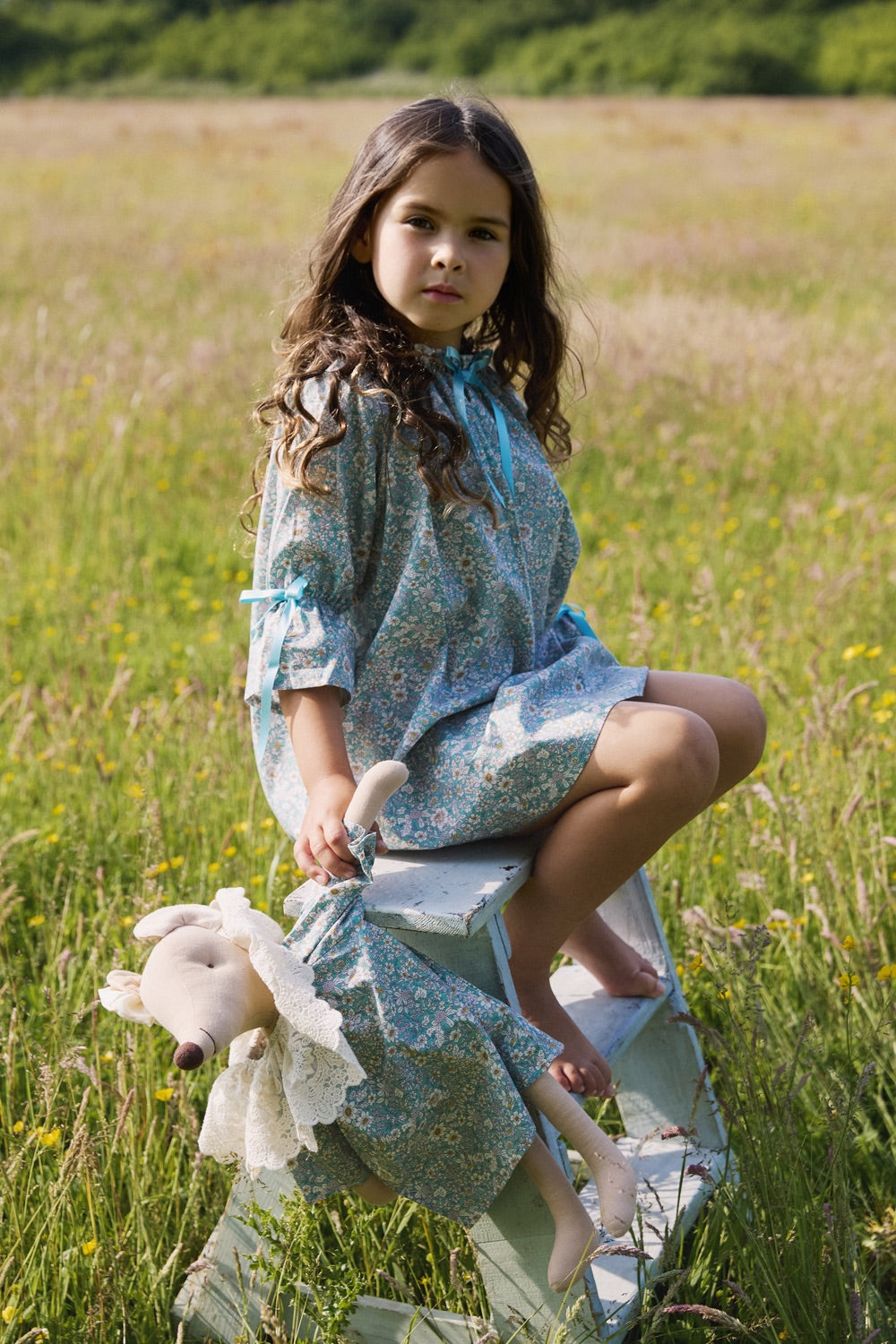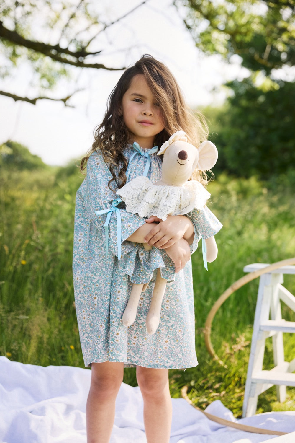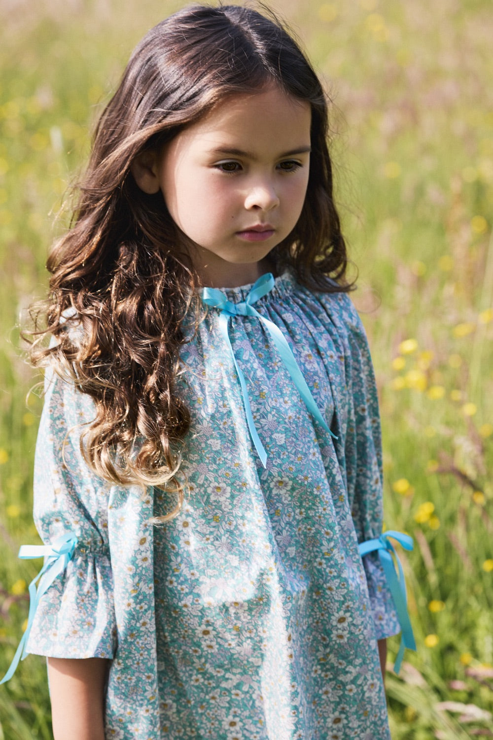This traditional style nightdress is super elegant. Iris has been Made with 100% cotton with a floral print, ruffled neck line with light blue bow detail. The arms are made to style as a 3/4 length bloomer arm, finished with bow detail. Iris is extremely comfortable and will continue to soften after a couple of washes.